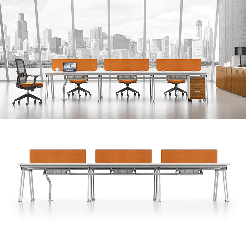 1、钢制脚架,实用高端大气;        2、整齐划一、人性方便的桌面铝合金过线系统。
