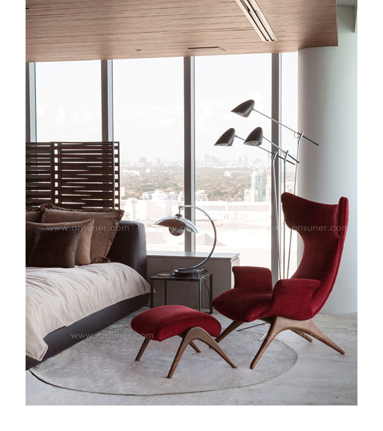 Ondine Armchair(水中精灵扶手椅),设计师Vladimir Kagan的经典作品。制作采用优质进口玻璃钢开模一次成型、结合实木脚架,进口优质羊绒布、软包内部填充进口优质高弹力海绵,提供舒适的人体工学。设计尊贵典雅,造型时尚大气,其流畅且精致的外观造型,只需要一个很小的区域便能散发出简约低调的质朴美感。