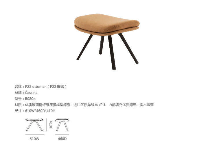 Cassina向又一位设计师发起挑战:Patrick Norguet推出P22,一把以当代语言诠释的经典bergère扶手椅。“我的初衷是想要设计一把休闲单椅,既尊重经典传统,但又赋予它新的时代精神。” Patrick Norguet。Patrick Norguet与Cassina的初次合作就是推出了一款风格现代的长榻躺椅,以其出众的舒适性而闻名。P22就是这么一款温馨舒适的扶手椅,有着经得起时间考验的设计,却不失当代感。能让舒适感倍增的脚凳也可以用作厚圆椅垫,让人更恣意地舒展放松。历史上Cassina成就辉煌,从Parisi到Ponti,那些伟大的建筑师们为品牌留下许多经典设计流芳后世。P22就是用时尚的语言诠释了其中一件经典的家具,让人们回忆起那些温暖的时光,同时又向未来跨出了一大步,因此品牌毅然决定要将这件设计付诸生产。因此P22成为了Cassina品牌的时尚标杆。P22的外形轮廓让人惊艳,铝铸的沙发脚带来极强的整体几何感,却又优雅地支撑着这款长榻沙发的高耸靠背。就像一个蚕茧,让人躲入其中,尽情放松。有皮革及布艺套面可供选择,Patrick Norguet为这把传统的长榻扶手椅精心准备了5种皮布混搭的时尚外套,可以选择皮革搭配布艺外壳,或是皮革搭配布艺内侧。更加突显这款扶手椅的温馨,让人情不自禁地便想躺上去休息。