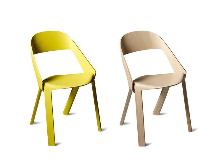 The chair’s design is simple and clear. The seat is bent down on four sides and holds the legs and the back on both outer sides.Molded plywood shapes the aesthetics of the chair.Pressing plywood into shape is an old technique that has seen a rapid development with the introduction of CNC milling technology in recent years.Complex molded parts can be inserted in milling tools and pressed directly with the plywood. This has opened new paths for shape and design.As with the chair Wogg 50,whose structural center is the core pressed in below the seat shell.