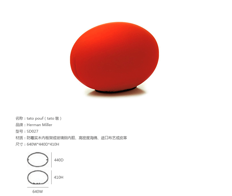 Denis Santachiara自1975年起,他一直致力于将艺术与设计结合在自己的作品里,并通过长期从事于具有寓意的设计事业,逐渐发展出自己独有的设计方法。Tato Pouf(tato墩)系列是其极具想象力的设计,防霉实木内框架或玻璃钢内胆、高密度海绵、进口布艺或皮革制作。造型有椭圆形 (Tato),球面形状 (Tatino),圆形的多坐式(Tatone),弯曲的多坐式(Tato Bean 或 Tato Bonbon),每个不同的形状的tato墩都有许多种颜色可以选择。